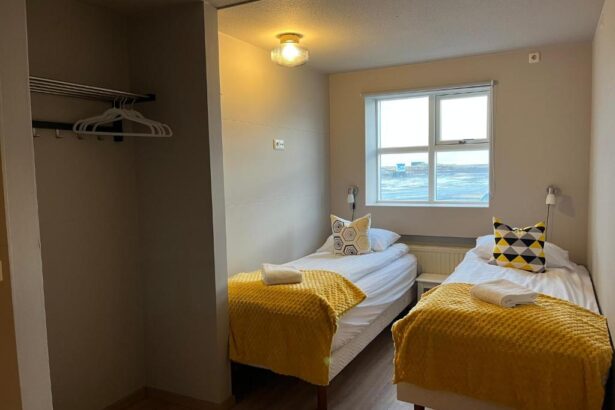 Guesthouse Hvammur harbourside property in Höfn, 5 minutes’ drive off Route 1 and a 30-minute drive from Vatnajökull National Park. Beautiful guesthouse located in the center of the town with magnificent views over the harbour and glaciers to the west.
